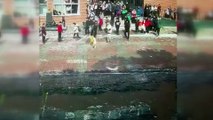 Adana^da okul bahçesine giren köpek öğrencilerle maç yaptı