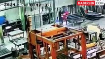 Briket blok makineleri yapımında kullanılan kalıbı taşıyan vincin zincirin kopmasıyla 1 tonluk kalıbın altında kalan işçi, yaşanan iş kazasında ağır yaralandı. Kaza anı güvenlik kameralarına yansıdı.