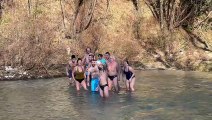 Sotto l'Appennino il tuffo di Capodanno nel torrente Auro