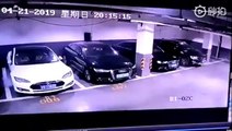 Une voiture Tesla garée dans un parking souterrain prend feu (Chine)