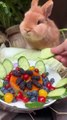😍Group of bunnies eating strawberries 👌country side
