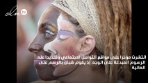 في مشهد فريد من نوعه، فتاة تستعين ببطة لرسم لوحة فنية رائعة لشجرة مزهرة