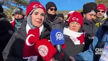 soğuk demeden, soğuğa aldırış etmeden Sarıkamış'ta yürüyüş devam ediyor. Yoğun binlerce kişi şu an bu