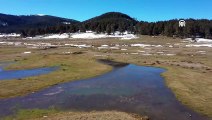 Nazik Gölü’nde görsel şölen: Donan göl yüzeyi havadan görüntülendi