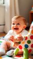 Laughing baby playing with toy