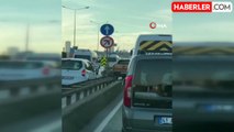 İstanbul Havalimanı yolunda motosiklet sürücüsünün tehlikeli hareketleri