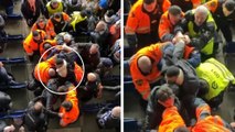 Aficionados del Barcelona increpan a un seguidor del Sevilla