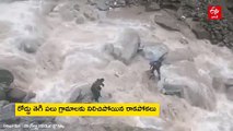 భారీ వర్షాలకు తెగిన వంతెన- ఎగ్జామ్ కోసం యువకుల సాహసం- ప్రాణాలకు తెగించి వాగు దాటి