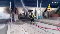 Il casello di Brescia in fiamme, l'intervento dei vigili del fuoco