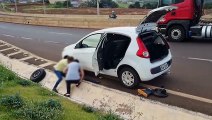 Acidente de trânsito deixa motociclista ferido no Trevo Cataratas, em Cascavel