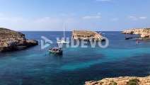 luxury yacht moored in comino island Mediterranean Sea during sunny day of summer