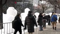 Скульптуры из снега и льда привлекают туристов на зимний фестиваль в Японии