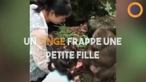 Un singe s'en prend à une petite fille