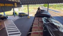 PRF apreende 600 mil maços de cigarros em bitrem na BR-487, em Umuarama