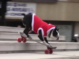 Dogs Skateboarding Down The Steps At Place Europe