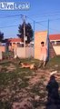 Ce chien saute sur le toît d'une maison en partant du sol !