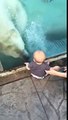 Niño se asustó al ver un Oso polar en un zoológico