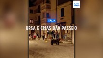 O passeio de uma família de ursos por uma aldeia italiana
