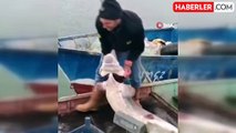 Balıkçının ağına 80 kiloluk yayın balığı takıldı