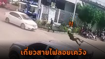 นี่รึคุณภาพชีวิตคนไทย ? หนุ่มขี่ จยย. ถูกสายเคเบิลเกี่ยวคอ ตัวลอยกลางอากาศ คอหวิดขาด !