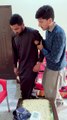 funny act between shopkeeper and customer.