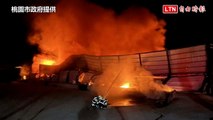 火勢猛烈 桃市大園區物流倉儲深夜狂燒(桃園市政府提供)