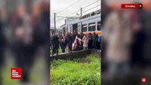 İstanbul'da metro raydan çıktı yolcular mahsur kaldı