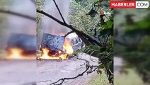 Bursa’da bir sürücü aracındaki yangına tavanına çıkıp su dökerek müdahale etti. Yürekleri ağza getiren görüntü kameraya anbean yansıdı.