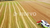 Drone footage of golden fields and combine harvester1
