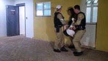 Homem que atirou roda de carro contra crianças é detido e carregado por PMs até a Delegacia