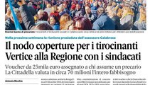 e ci sono i problemi, pure il titolo di apertura, nel riparto del fondo sanitario alla Calabria