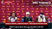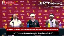 USC Trojans Coach Lincoln Riley, Wide Receiver Makai Lemon, and Cornerback DeCarlos Nicholson discusses players who impacted the game