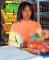 Su madre cocinando en fogon y ella con dinero guardado
