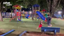 Vídeo mostra suspeito tentando apagar imagens após ser flagrado filmando crianças em parquinho
