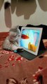 Kitten watching cartoon