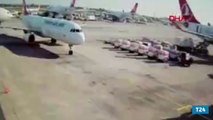 Brezilya'nın Rio de Janeiro kentinde bir yolcu uçağı, kalkış sırasında pistte ilerleyen bir araca çarptı. Yaralanan olmazken uçuş iptal edildi ve havalimanında güvenlik önlemleri alındı. - Brezilya'da yolcu uçağı kalkış sırasında araca çarptı RIO DE JANEIRO - Brezilya'nın Rio de Janeiro kentinde yolcu uçağı, pistte kalkış sırasında bir araca çarptı. Yaralanan olmazken, uçuş iptal edildi. Brezilya'nın Fortaleza şehrinde gitmek üzere Rio de Janeiro'daki Galeao Uluslararası Havalimanı'nda kalkış için pistte ilerleyen GOL Hava Yolları'na ait Boeing 737 MAX tipi yolcu uçağı, bir araca çarptı. Yaralanan olmazken, uçuş iptal edildi, yolcular uçaktan indirildi. Havalimanı itfaiye ekipleri, muhtemel bir yangını önlemek için uçağa müdahale etti. Sosyal medyada paylaşılan ve kalkış sırasında bir yolcu tarafından çekilen görüntüde, uçağın hızlandığı sırada bir çarpma sesi duyulduğu ve uçağın pistin sağına doğru savrulmaya başladığı görüldü.
