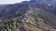 Köyü ve dağ eteklerini kaplayan sis denizi mest etti