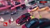 İstanbul'da sürücü park halindeki 2 otomobilin üzerine çıktı