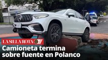 Camioneta de lujo cae dentro de una fuente en Polanco; conductor se quedó dormido