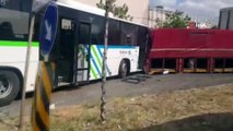 Tekirdağ'da otobüs park halindeki araca çarpıp kaçtı