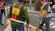 基隆市公車漏油2騎士摔傷 環保局人員以木屑除油