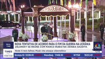 Ministros de Rússia e EUA se reuniram na Arábia Saudita para discutir um possível acordo de paz na Ucrânia, enquanto potências europeias, lideradas por Emmanuel Macron, questionam a exclusão. O presidente ucraniano Volodymyr Zelensky, principal interessado, segue alheio às conversas.