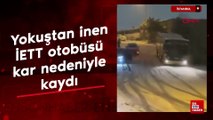 Eyüpsultan'da yokuştan inen İETT otobüsü kar nedeniyle kaydı