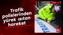 Kars'ta yolda kalan ailenin imdadına polis koştu