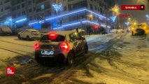İstanbul'da yoğun kar yağışı araçlara zor anlar yaşattı