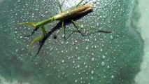 Una mantis religiosa casi muerta controlada por un gusano parásito