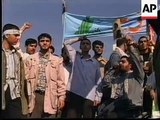 Manifestantes anuncian la muerte de Salman Rushdie (1989)