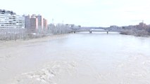 Crecida del río Ebro a la altura del Puente de Piedra y del Puente de Santiago de Zaragoza