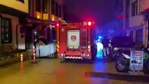 Bursa'da metruk bina yıkıldı; park halindeki otomobil zarar gördü