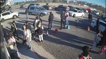 Otobüsler otomobillere kartopu atıp eğlendiler